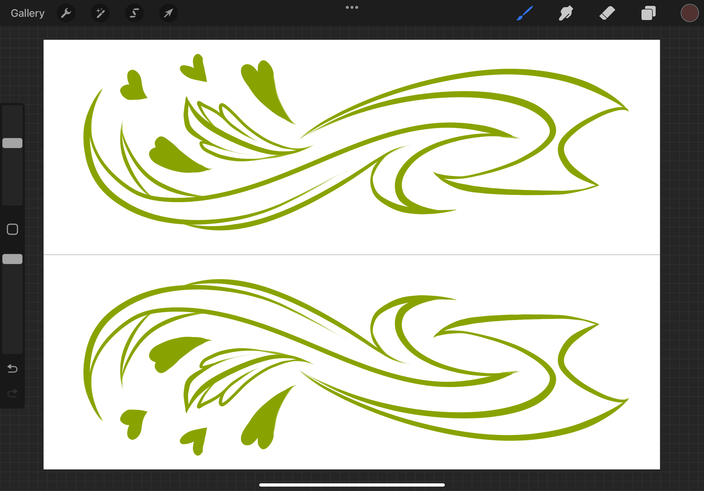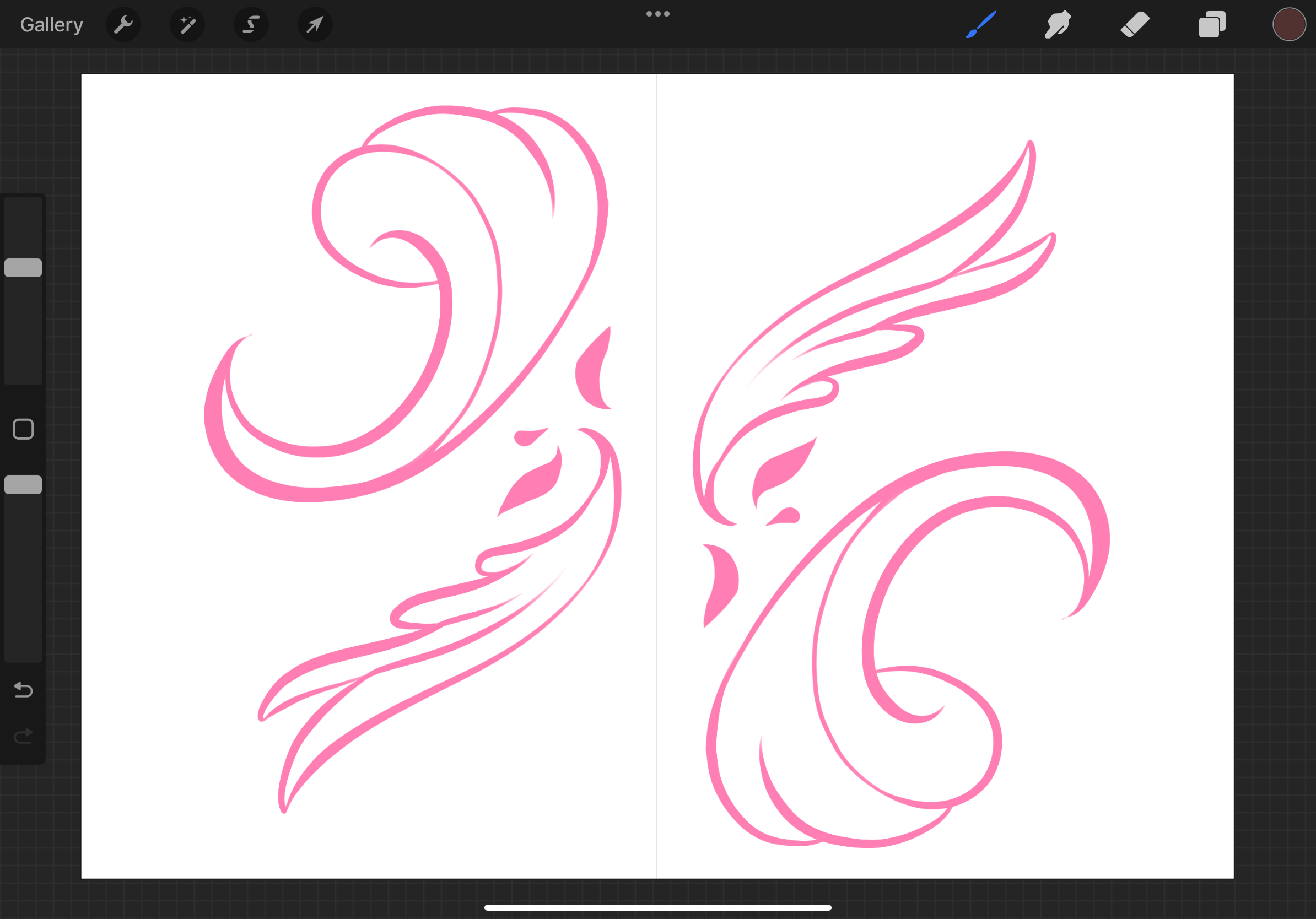 As the name suggests, this option will create vertical symmetry. Basically, whatever mark you create on the left side of your canvas will be mirrored exactly on the right side, and vice versa. If youâre a concept artist, this tool will be superb in generating tons of ideas quickly and efficiently as it cuts down the brainstorming time literally in half!