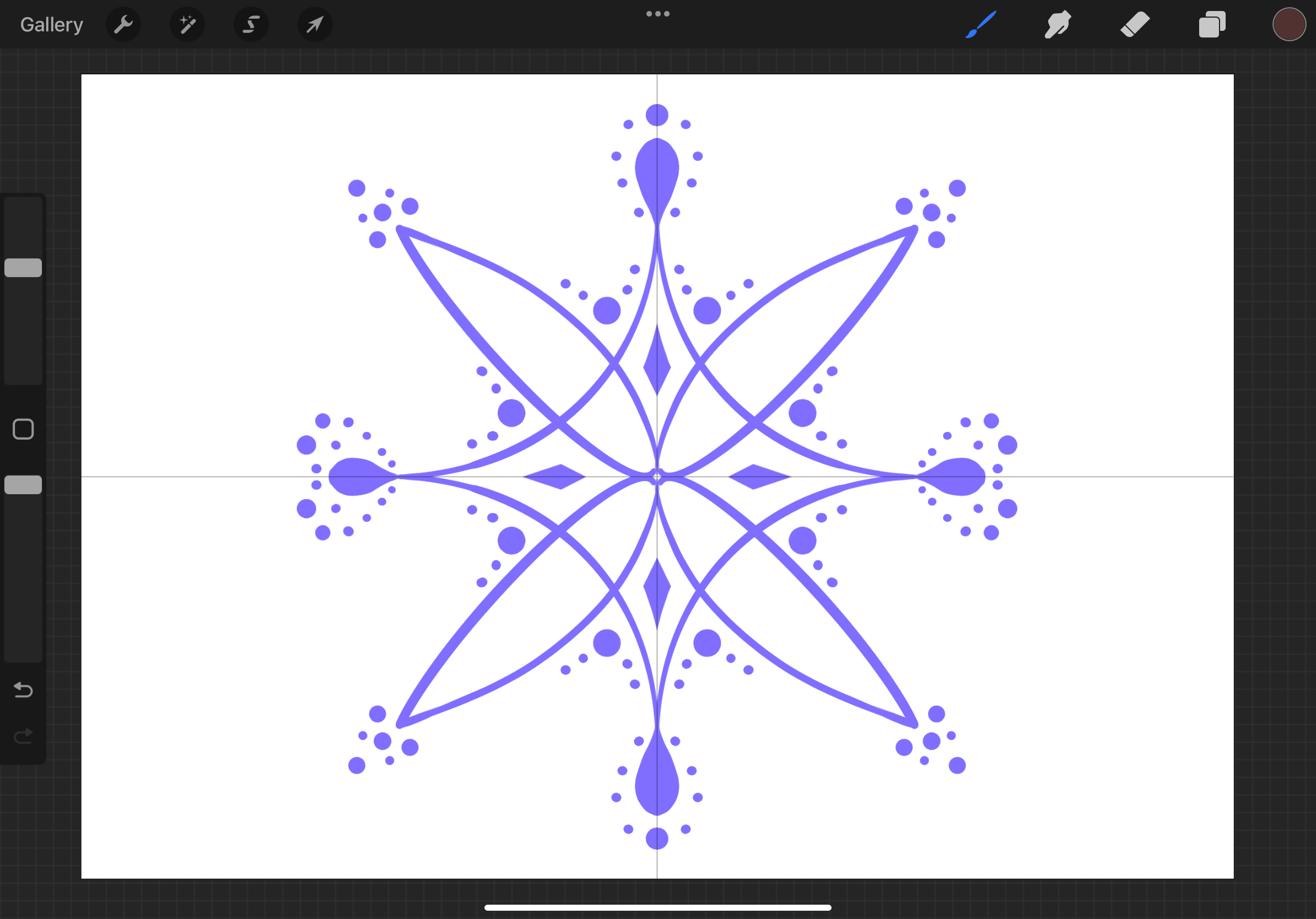 The last of the bunch, Radial symmetry is a more advanced version of the Quadrant Symmetry in which it divides your canvas into 8 equal parts, instead of 4. The marks will be mirrored in each section! This guide is useful for making intricate patterns such as mandalas!