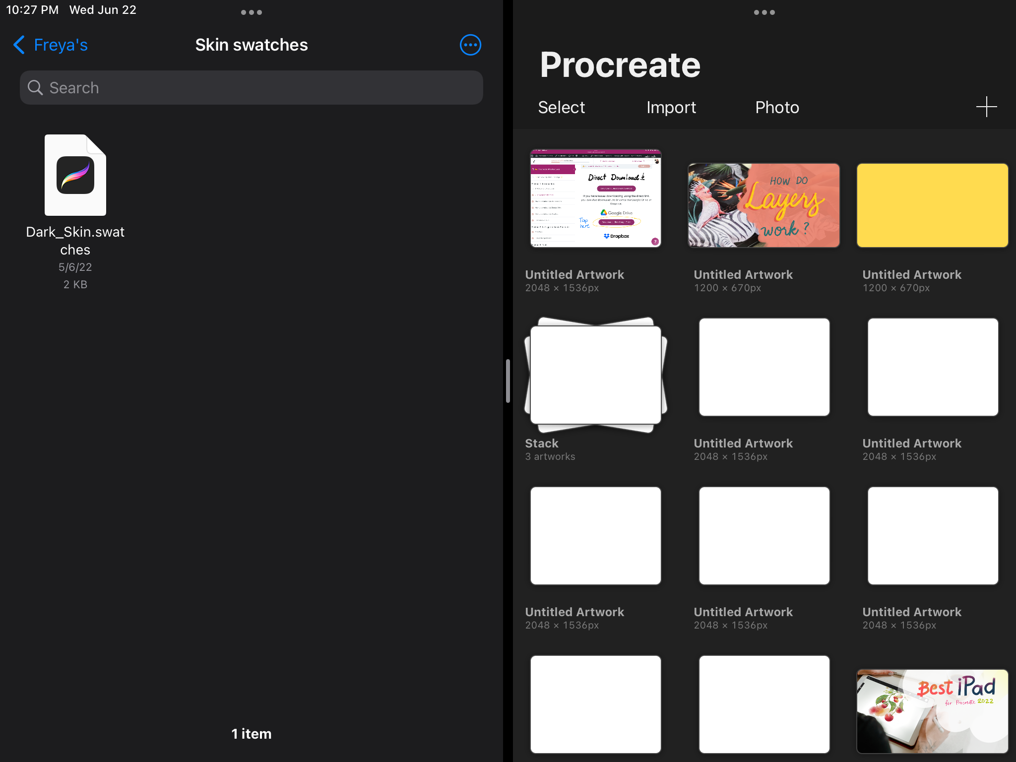 Just like the other files we use in Procreate, we can also simply drag and drop our swatch files into Procreate.
