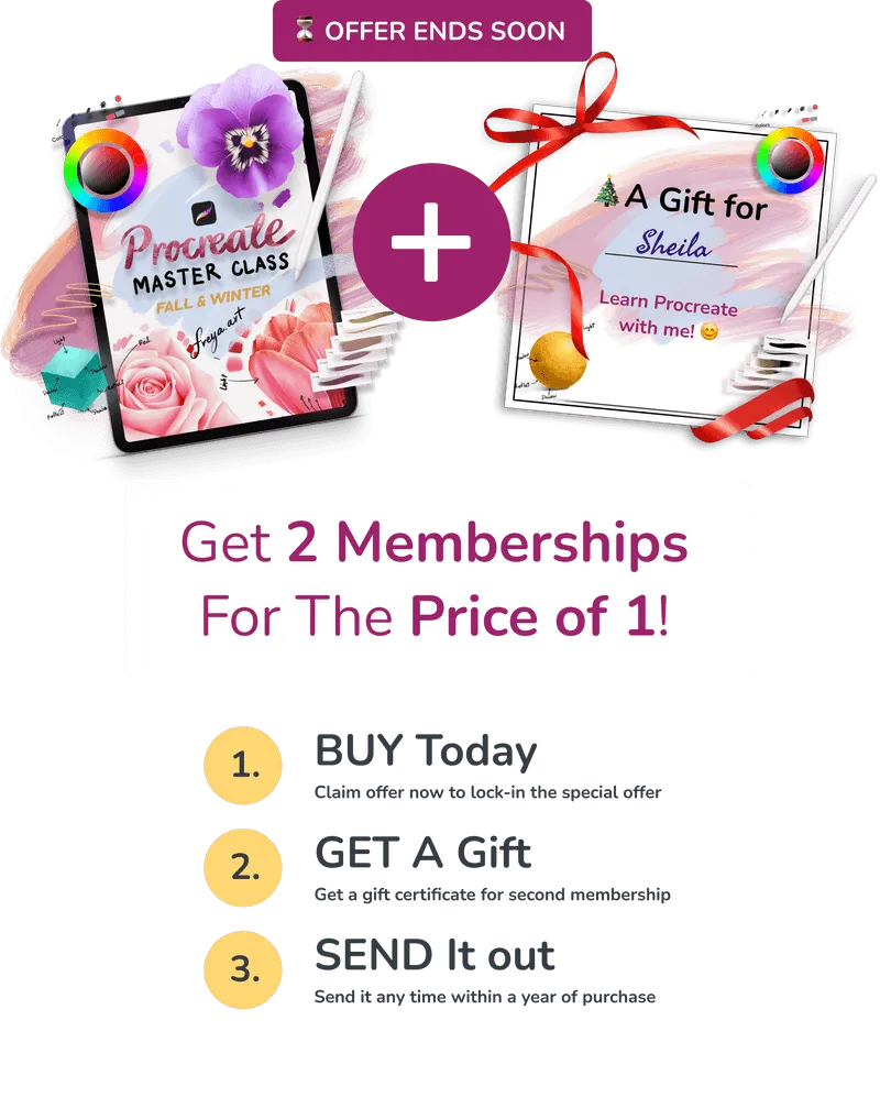 You’re in luck! Procreate Masterclass is specifically created to fit into any lifestyle so you can go at your own pace. There is no course schedule you have to maintain - watch the videos and practice whenever it’s convenient for you.