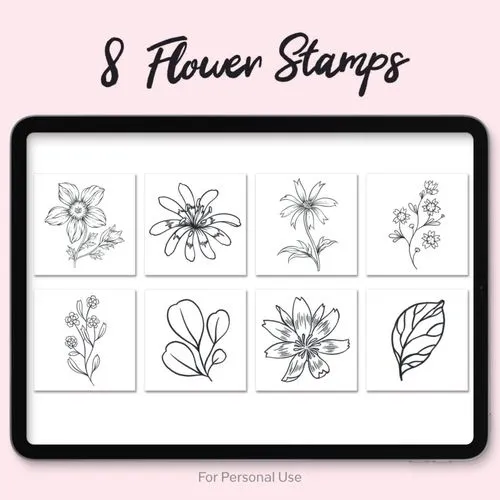 Use gorgeous stamp brushes to save a lot of time when creating a sketch from scratch, or make some quick outlines to practice coloring in Procreate in just one tap.