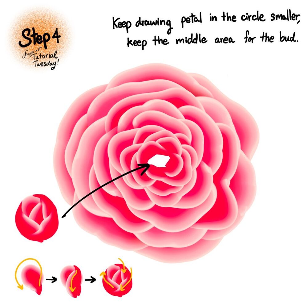 Step 4: Keep drawing the petal smaller, until you need to draw the bud in the middle. To draw the petal, create a closed loop and slowly add small petals in a clockwise direction.