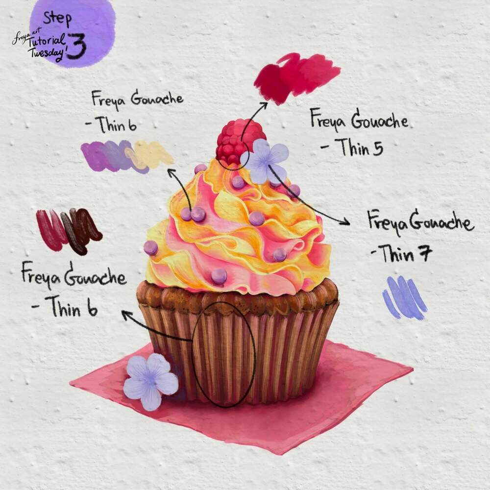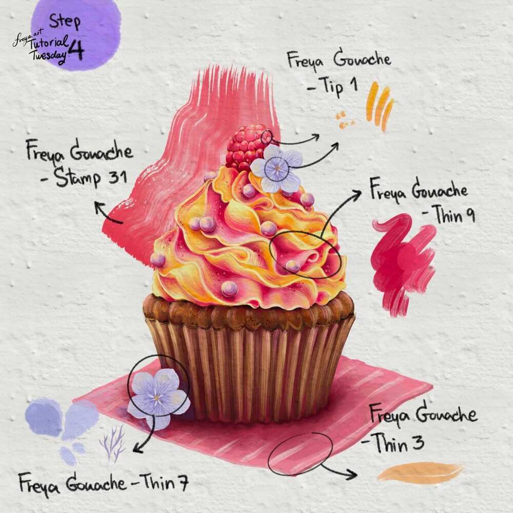 Hello! In today's tutorial, we are going to work on a cupcake illustration using the premium brushes from my Realistic Gouache Brush Set. Please download the tutorial files before we begin. It include the tutorial PDF, swatch palette, and sketch file for this tutorial.