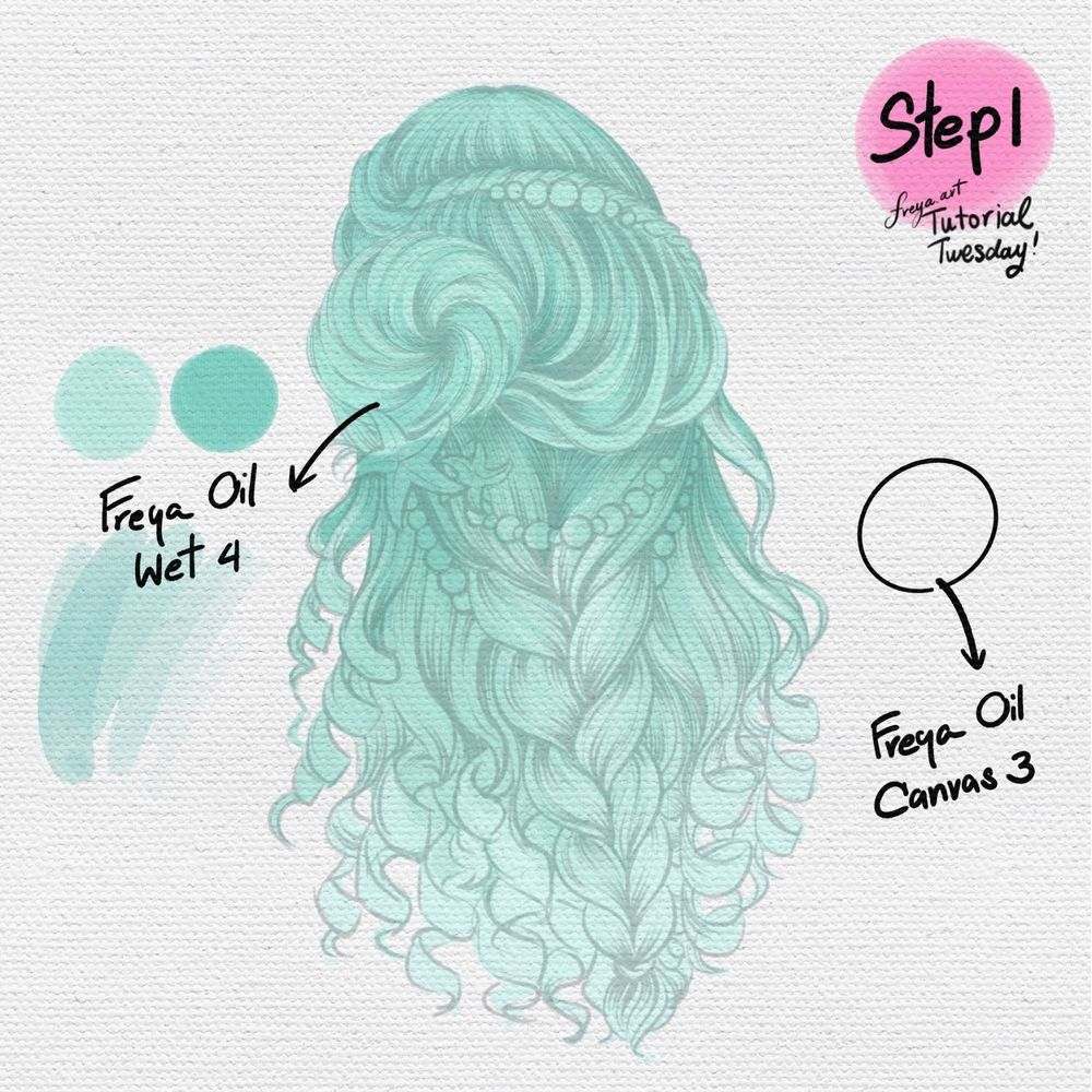 Hello! Today we're going to work on this Mermaid Hair Tutorial using the sampler brushes from my Freya Oil Brushset. Please download the tutorial files first. You'll get the sampler brushes, a sketch file, the color palette and a PDF version of the instructions.